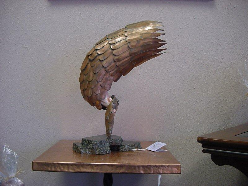 Copper Wing - with hand carved alabaster figure on granite base